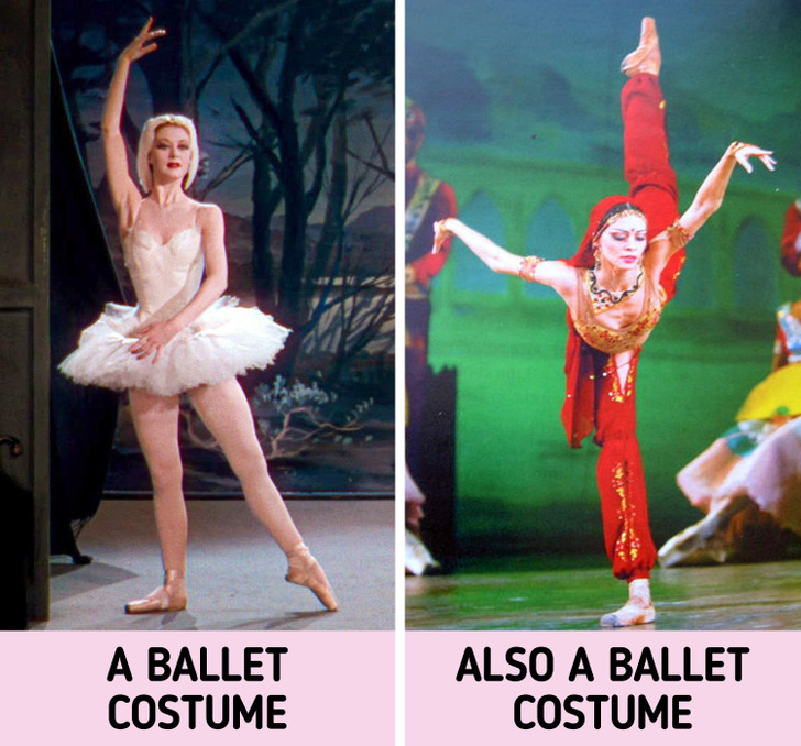 In reality, ballet costumes can be strikingly diverse. Here’s what a real dancer says about this, “Throughout my career, I maybe wore a pink tutu twice when I played Sugar Plum and Aurora. At all other times, it was dresses, leotards, and some interesting costumes in different colors.”