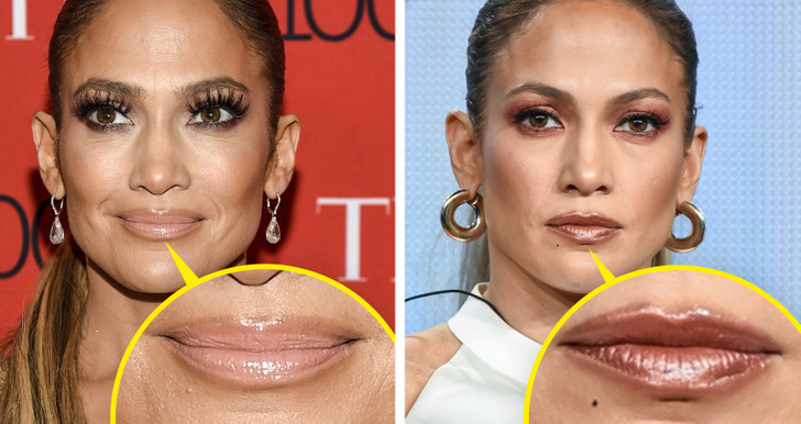 Lopez always increases the natural outline by 1-2 mm using pencils in natural shades to make her lips appear fuller.
