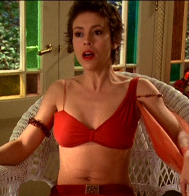 In the TV series Charmed, the main characters appeared in very revealing costumes quite often. And they could show up in a swimsuit-like outfit in the most unexpected places, like woods, for example. Alyssa Milano even said that she thought the series creators made the costumes too revealing.