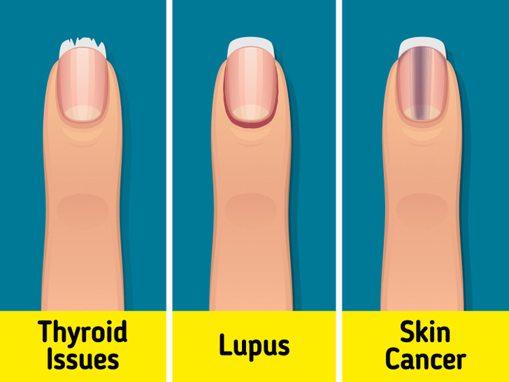 Changes in your nails can also reveal hidden health concerns. Brittle or splitting nails may signal hypothyroidism (an underactive thyroid) or deficiencies in vitamins such as A, C, or biotin (B7), though frequent use of nail polish remover can weaken nails as well. Red, puffy skin around the nail folds is often caused by paronychia, a common infection, but in some cases it may be associated with lupus or other connective tissue disorders. Dark vertical lines on the nails, especially those extending from the cuticle to the tip, can be a warning sign of subungual melanoma, a serious form of skin cancer, and should be evaluated by a healthcare professional even if they are painless.