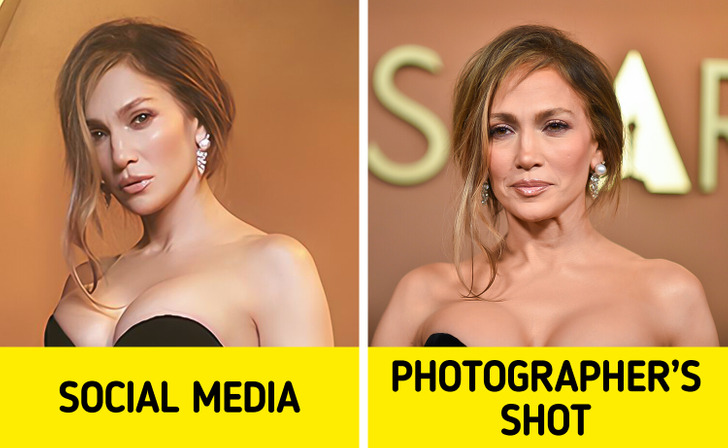 Like most of us, celebrities tend to post only their best photos on social media. Still, their polished pics can sometimes look very different from how they appear when photographed in real life. We decided to compare the images stars choose for themselves with the ones taken by the pros.