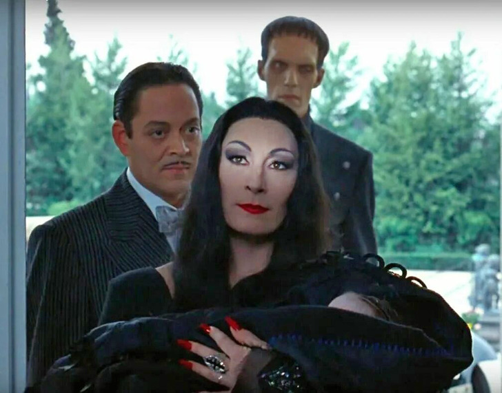 As a continuation of the Addams Family story, in addition to the expressive make-up, Morticia’s eyes were illuminated with a beam of light independent of the lighting of the entire scene.