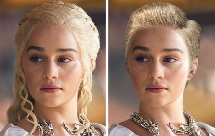 At the beginning of the first Game of Thrones book, Daenerys was only 13 years old, but in the beginning of the series, she’s 17 years old. And that’s not all. George Martin described her as a short, slim girl with purple eyes and silver-white hair.