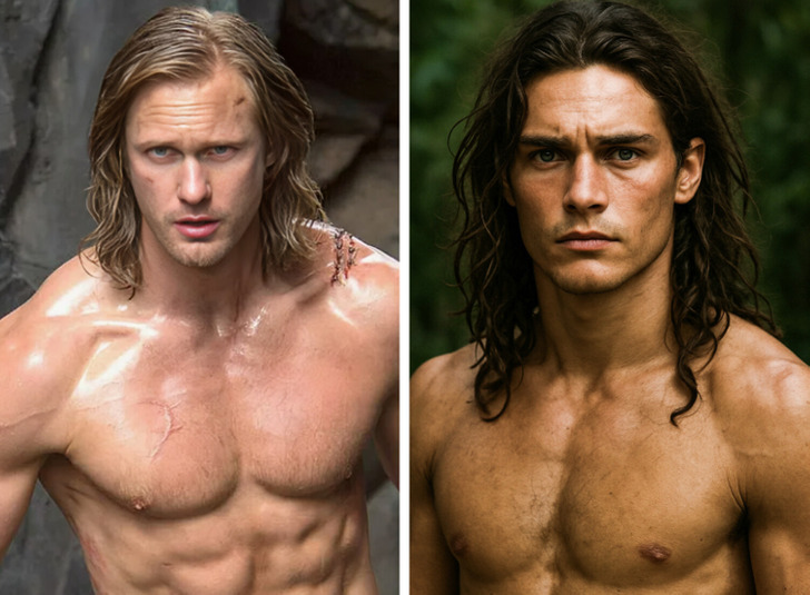 Because of The Legend of Tarzan, we tend to picture the character as Alexander Skarsgård — tall, blond, blue-eyed, and fair-skinned. But the author had something quite different in mind. In the original novels, Tarzan is described as deeply tanned, with gray eyes and long black hair.