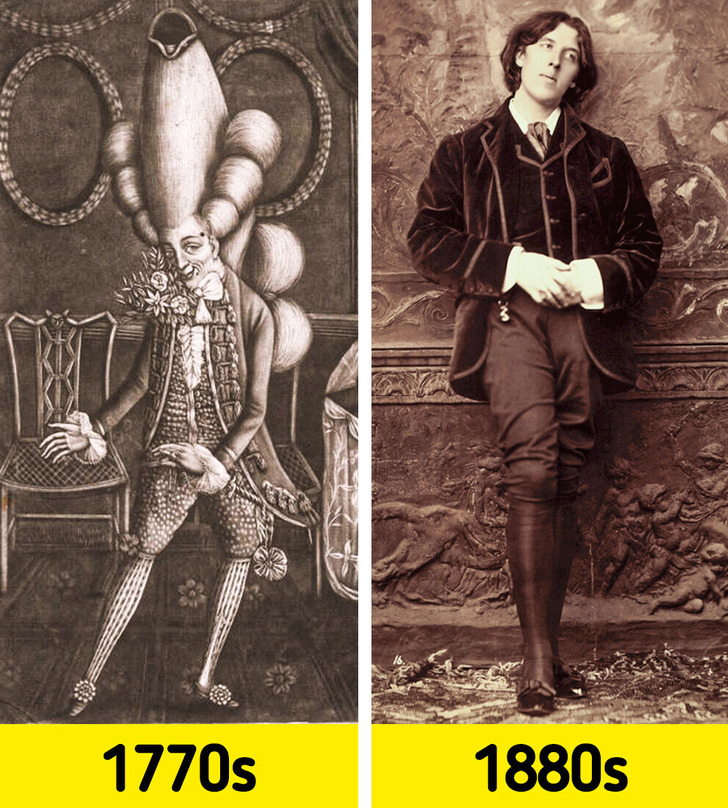 Forget the dandy: it’s time for the macaroni to take the fashion stage. This was the name for trendy fellows in 18th-century England, who dressed and spoke in an extremely outlandish manner for their time. Skinny men wearing tight pants, short coats, flashy shoes, striped socks, and last but not least, their trademark exaggerated wigs. Someone who we could confidently call an 18th-century hipster.