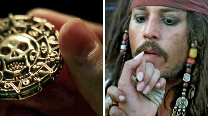 Something strange is going on with Elizabeth’s nails in this movie. When she’s grown up and examining the pirate medallion, the close-up shows her nails cut short, which actually fits the fashion of that time. But when the kidnapped Elizabeth appears onscreen, she suddenly has a fresh French manicure — looks like the pirates must have opened a nail salon on the ship.