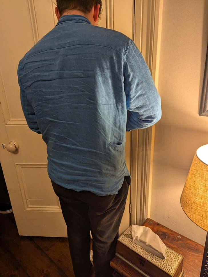 Answer: It’s a vestigial device deliberately installed into a great number of imported shirts so that they classify as a specific article of clothing which avoids a tariff.