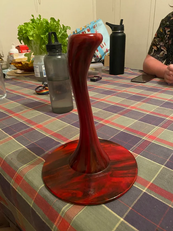 Answer: Definitely, a drop-out art glass vase. Often times the wide rim would be cut off, allowing it to stand upright.