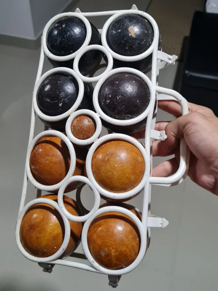 Answer: Lawn bowling set. I should say more likely bocce. Italian lawn bowling.