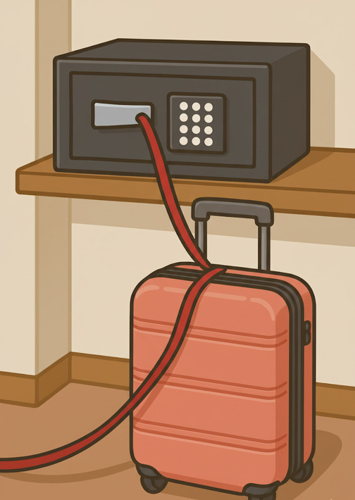 If you use a hotel safe, tie one end of a brightly colored ribbon or string to its handle and the other end to something you’re sure you won’t forget. For example, your suitcase. This way, you’re sure not to leave anything important in the safe when you check out.