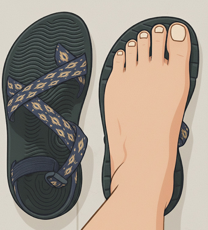 How to do it? Before buying shoes, do a little test: turn it over and place your bare foot on the sole of the shoe. If your foot doesn’t extend beyond its edges, everything is fine. It’s those sandals, flip-flops or sneakers that may be perfect for a long journey.