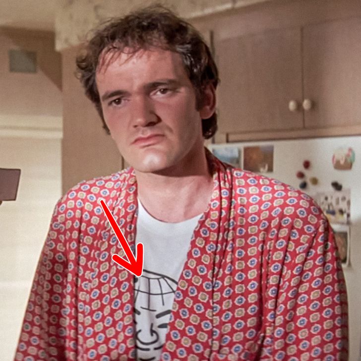 Quentin Tarantino’s character is wearing a T-shirt with a smiling globe. This is the logo of the Detroit magazine Orbit. Orbit was the first to interview Tarantino about his directorial career and put him on the cover. Perhaps this is how Quentin decided to show his gratitude to the publisher who did him great honor in the past.