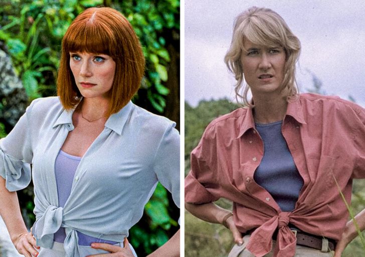The movie creators left a funny reference to the first movie, Jurassic Park. When Bryce Dallas Howard rolls up her sleeves and ties her shirt at the bottom to say “I’m ready,” she’s wearing it the same way Laura Dern did.
