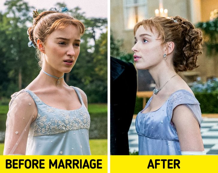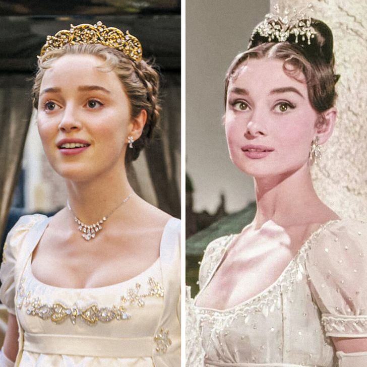 It was Marc Pilcher who was responsible for the hairstyles and makeup in Bridgeton. To create Daphne’s image, he got inspired by the cult Hollywood actress Audrey Hepburn and her role in War and Peace, in particular. Elegance, simplicity, and cute curls on the forehead are the things that these 2 heroines have in common.