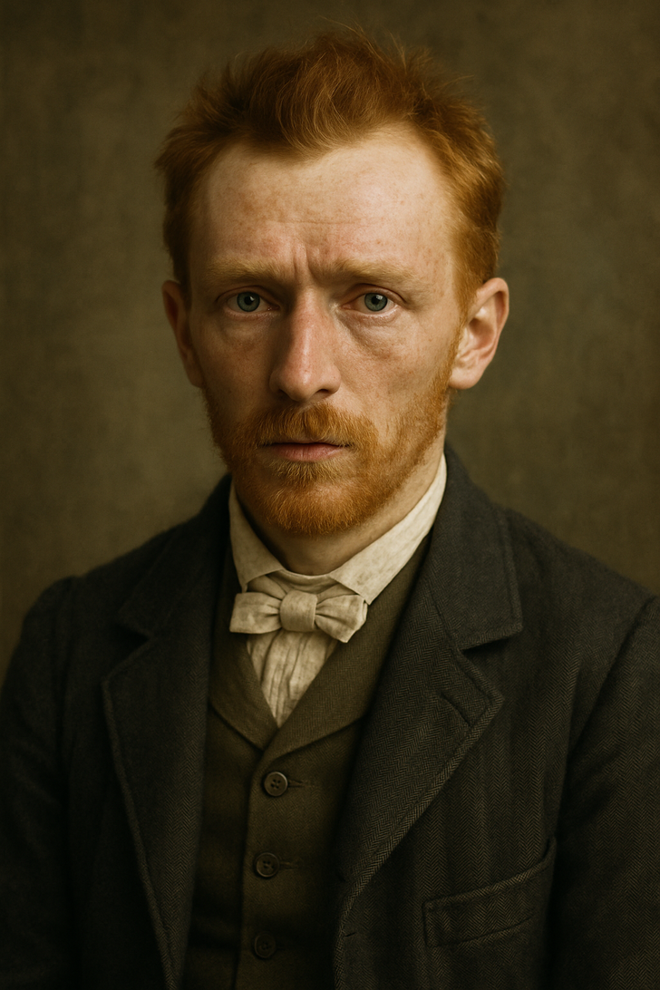 This is how the artist saw himself, and below is how the artificial intelligence saw him.