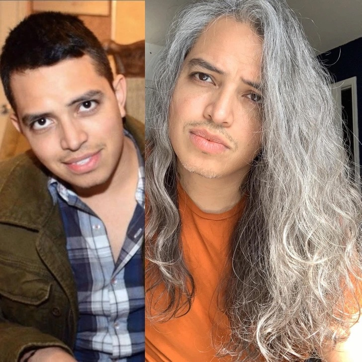 13. “I struggled with having grey hair at a young age. 3 years ago I decided to stop using dye and let my hair grow.”