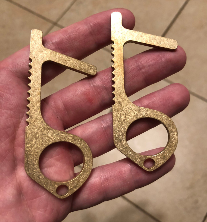 Answer: They go on your key ring, and you use them to open doors or push buttons, so you don’t have to use your fingers.