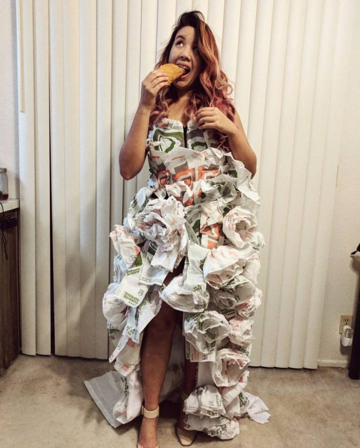 14. “I made a wedding dress out of Taco Bell wrappers.”