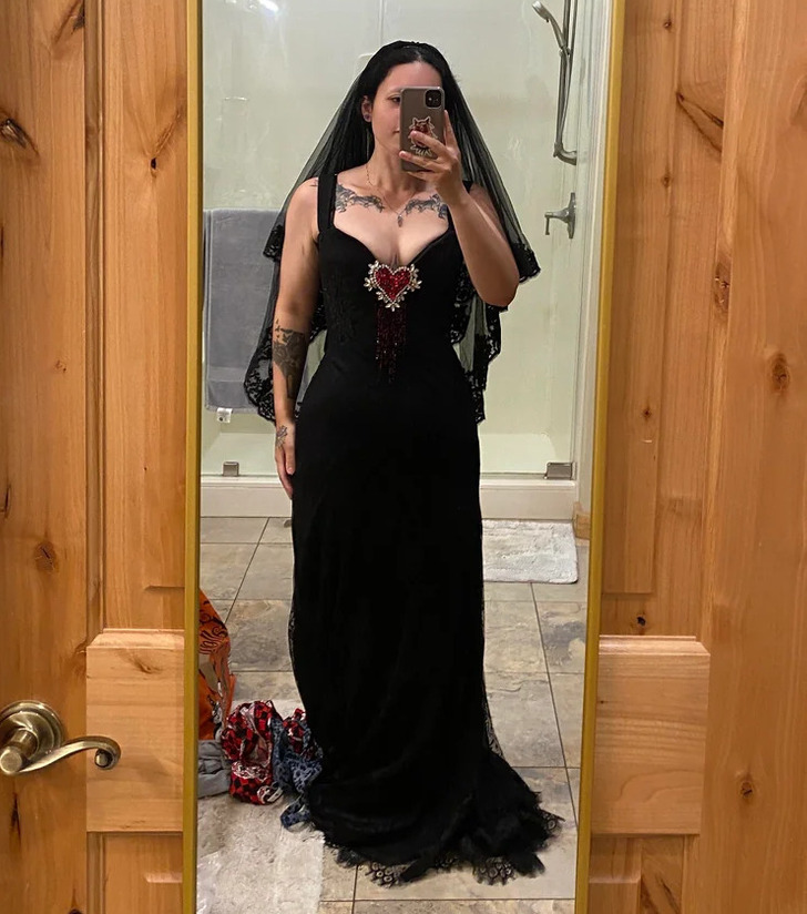 4. “I finally got the pictures back from my wedding a few months ago and just wanted to share my non-traditional wedding dress.”