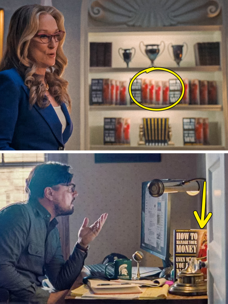In Don’t Look Up, we often see a book, written by the character of Meryl Streep, president Orlean. But the biggest number of these books is seen in her own office! Viewers think it was a way to convey her arrogance by way of narcissistic behavior.