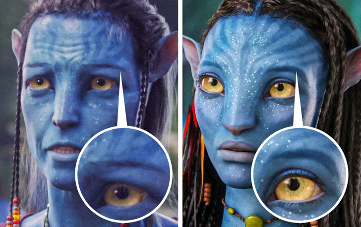 And even though all the blue characters looked alike, there were still 2 differences between the real creatures of Pandora and those with avatars. Engineers created avatars with 5 fingers, while Na’vi have only 4. And also, real Na’vi don’t have eyebrows. They have stripes on their skin that look like eyebrows, but they have no hair. The same is true for the second film.
