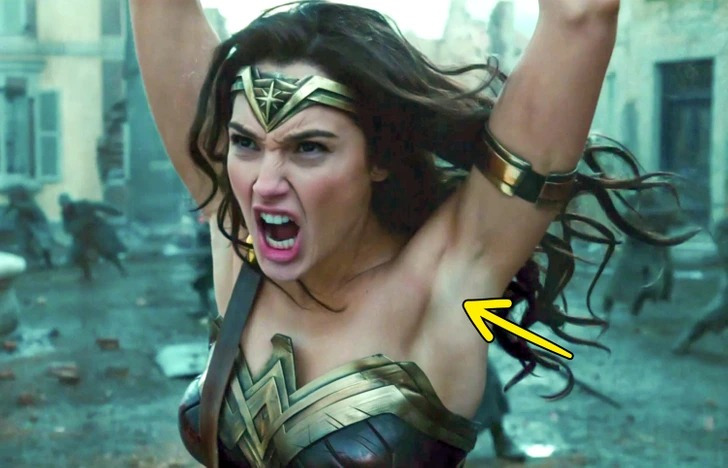 Fans noticed that Gal Gadot’s armpits looked bleached in the Wonder Woman trailer. At the same time, the actress didn’t have any other light spots on her skin. Most likely, Gadot’s pits were digitally bleached in post-production to remove skin creases in this area in close-up.