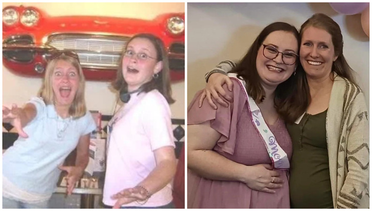 5. “19 years of friendship. We are both pregnant in the last picture.”