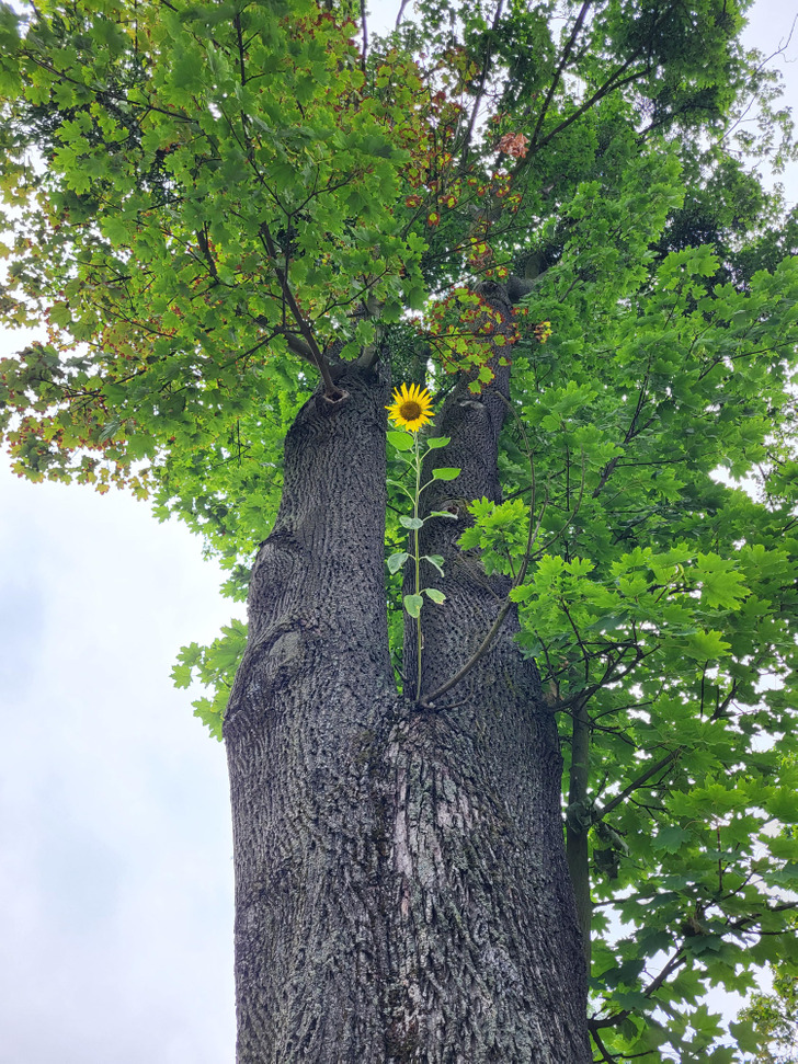 1. “Sunflower growing on a tree.”