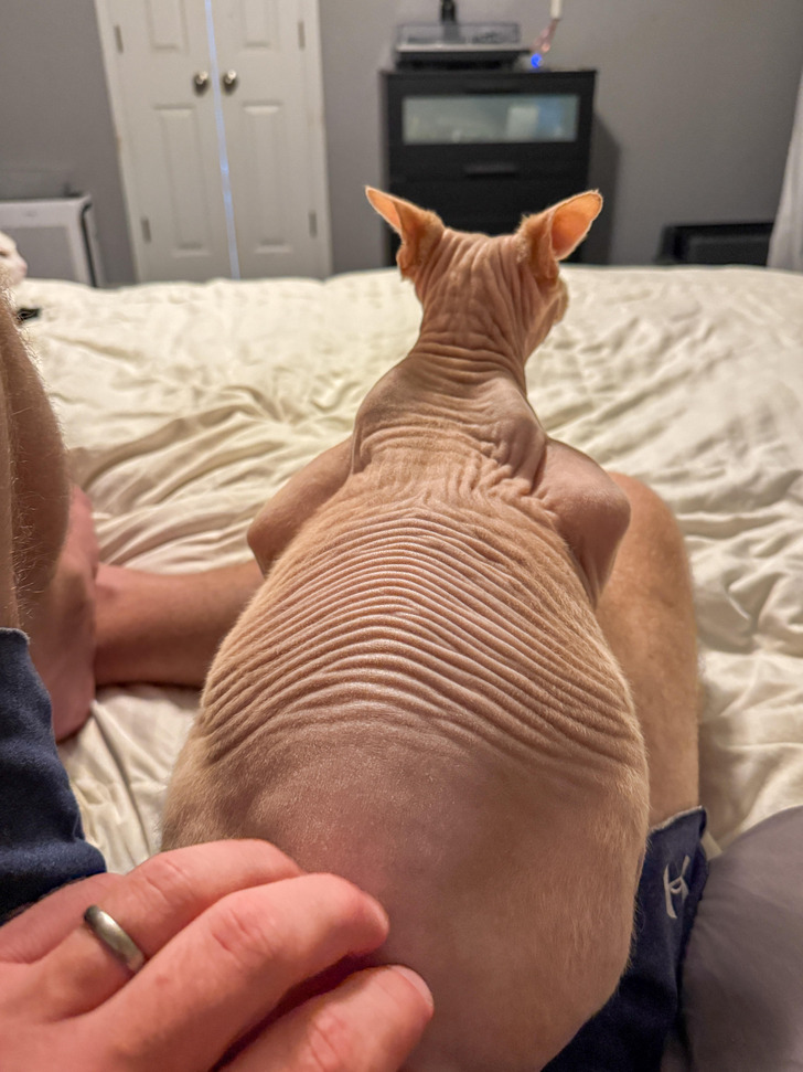 12. “Sphynx wrinkles his back whenever I pet him.”