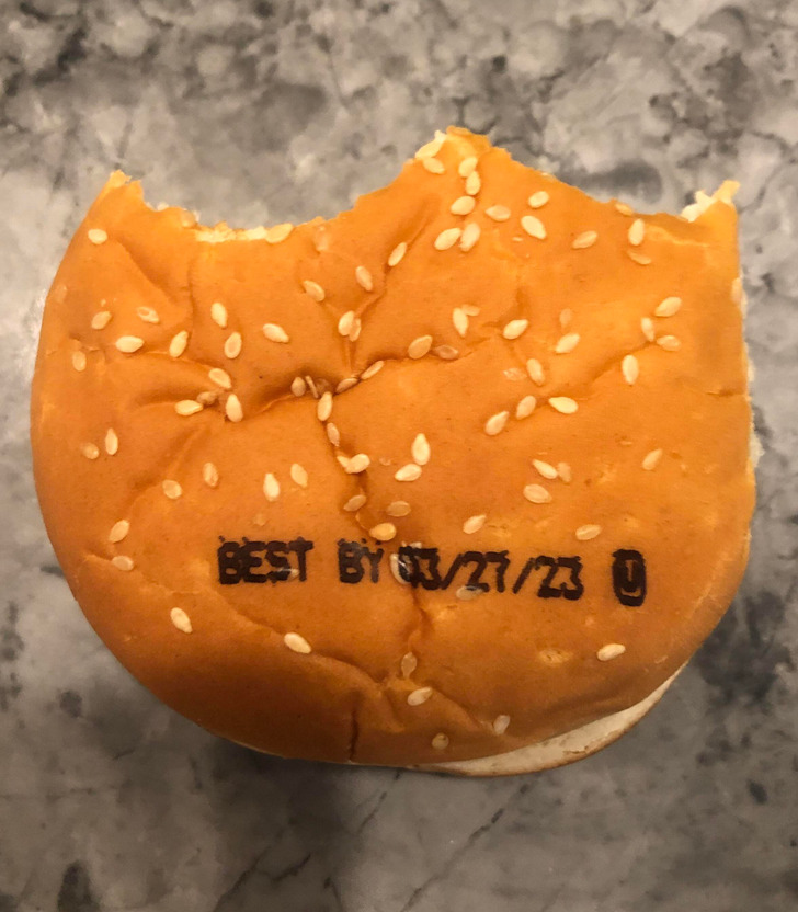 13. “Noticed a few bites in that this bun has the ’best by’ date stamped onto it.”