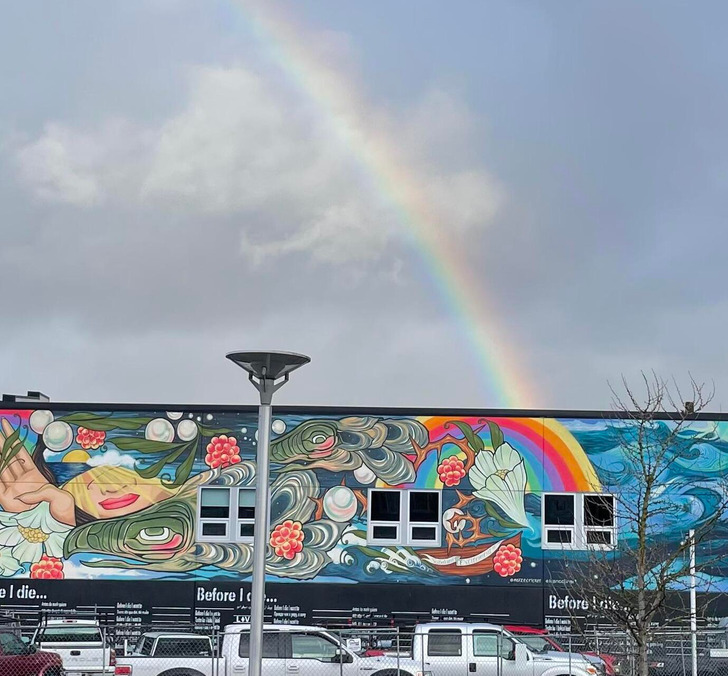 3. “This rainbow appeared and intersected with the mural rainbow just as I was walking by.”