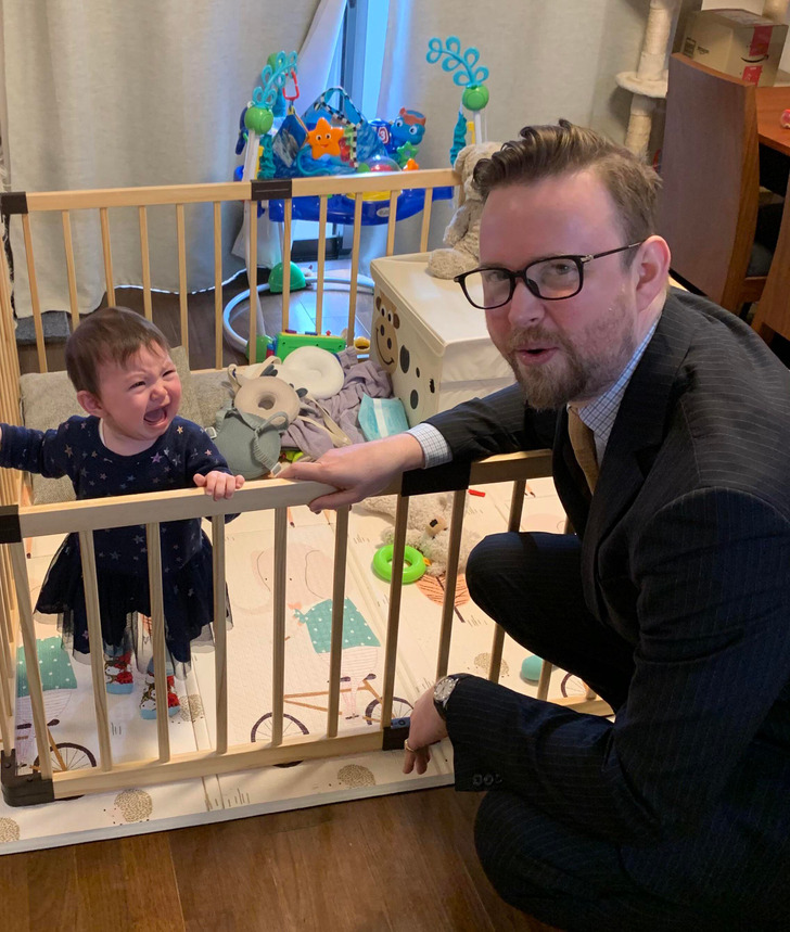 1. “After 9 months of working from home, this morning was the first time my daughter has seen me in a suit. Did not approve!”