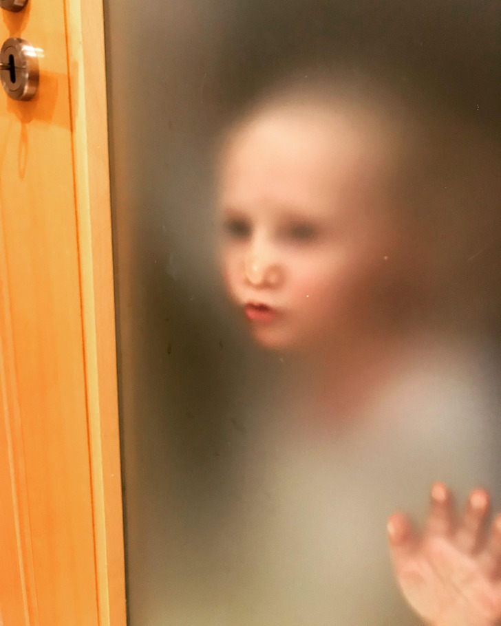 17. “Our Airbnb had a translucent bathroom door. I’m used to my impatient toddler stalking me through the bathroom door, but this took it to a much creepier level.”
