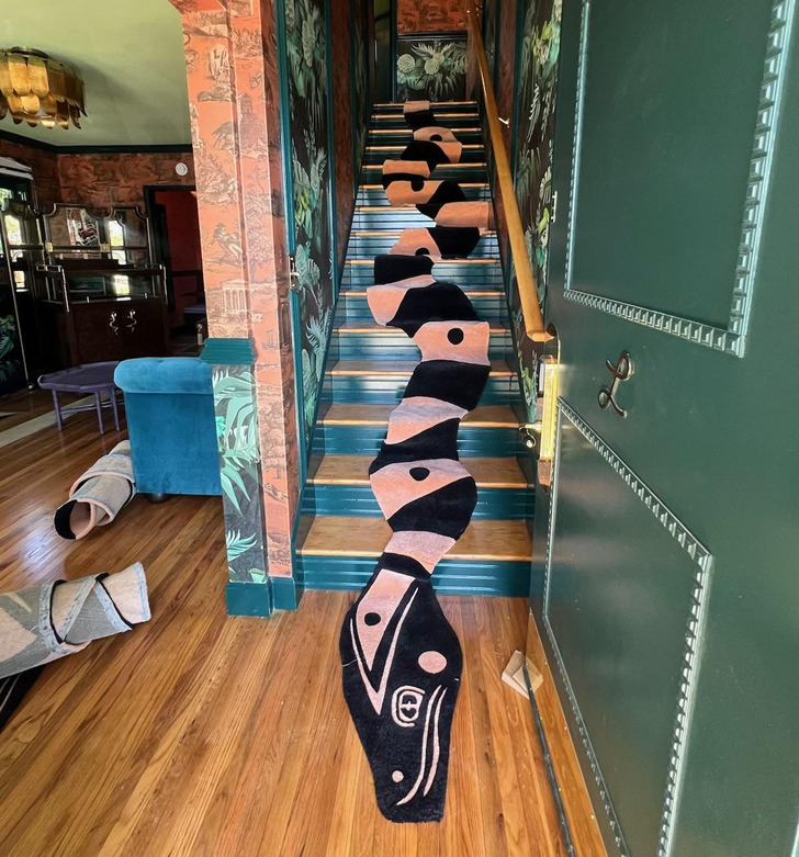 14. “I made a stair runner snake rug for a hotel.”
