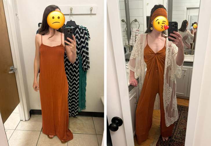 5. “With a simple flick of the wrist, this dull thrifted dress is magically transformed...”