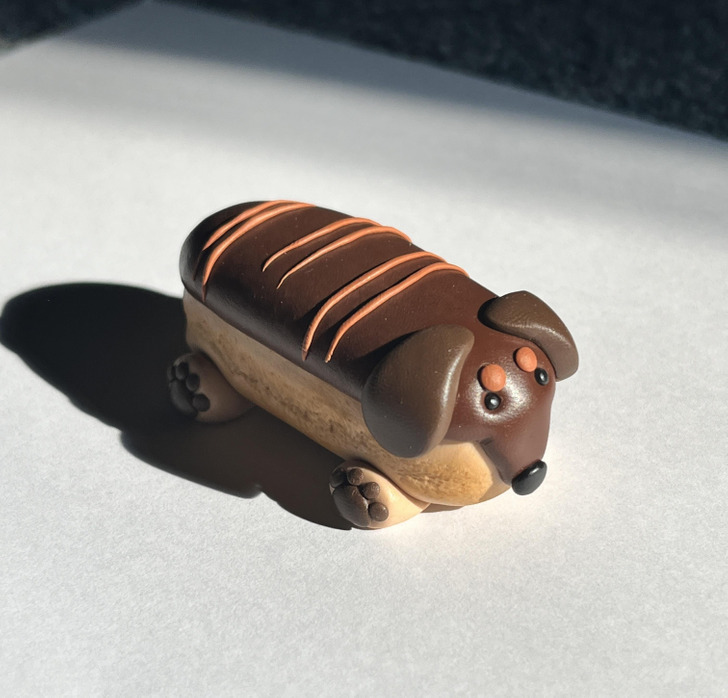 15. “I made a chonky eclair dog.”