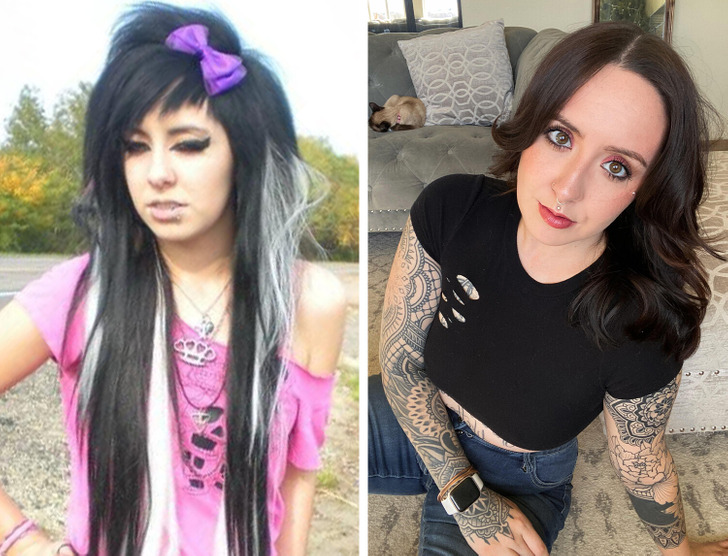 14. “In honor of National Emo Day I thought I’d share my fav Rawr XD MySpace looks. The second photo is me now.”