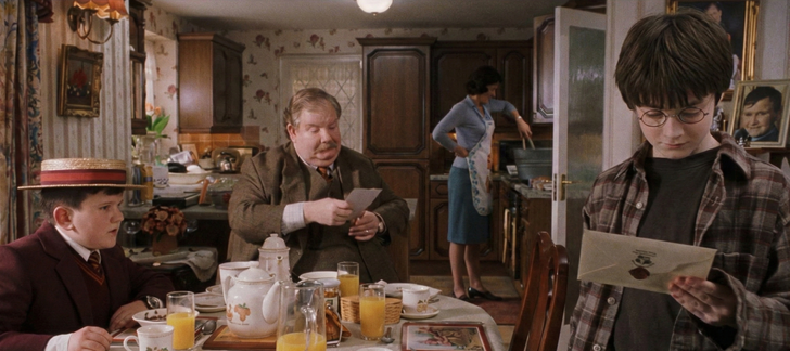 In Harry Potter and the Philosopher’s Stone, Aunt Petunia isn’t cooking—she’s dyeing Dudley’s old clothes grey to make Harry’s school uniform. This little detail only appears in the book.