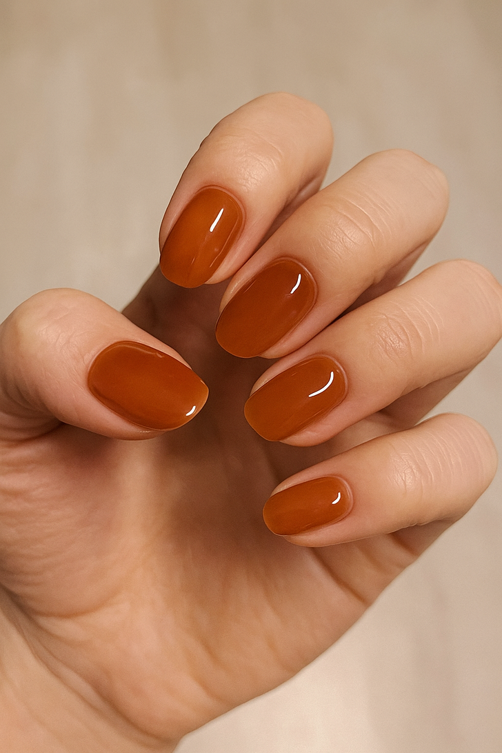 Pumpkin orange nails feel very “autumn basic,” they’re safe, seasonal, but starting to look repetitive. While the warm shade is still pretty, it doesn’t scream fresh trend anymore. To elevate this look, try a velvet matte top coat, or mix in a gradient with rust or burgundy tones to give it more depth and edge.