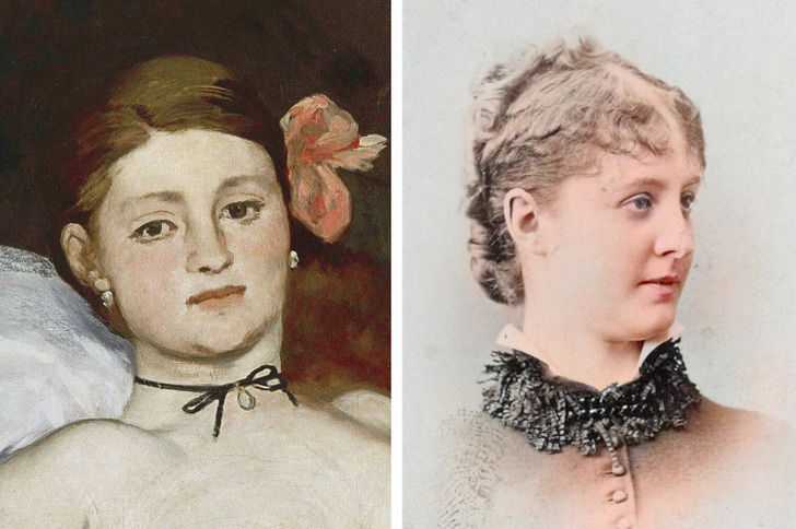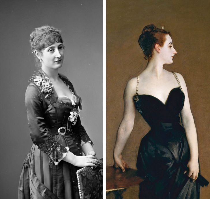 Virginie Gautreau was a star of the Belle Epoque. She stood out among others for using lavender powder to improve her complexion and body color. Her beauty captivated the artists of the 19th century. Virginie posed for Gustave Courtois and Antonio de la Gandara. But her most recognizable portrait is Portrait of Madame X (the right picture above) by John Sargent.