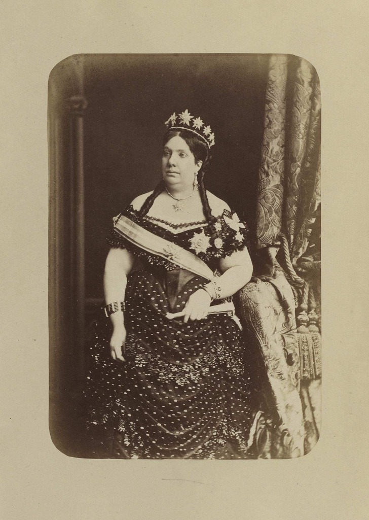Isabella II of Spain was one of the most photographed and painted monarchs of her time. Her striking and instantly recognizable features — bold facial structure, expressive eyes, and a signature braided hairstyle wrapped around her head — caught the attention of 19th-century artists.