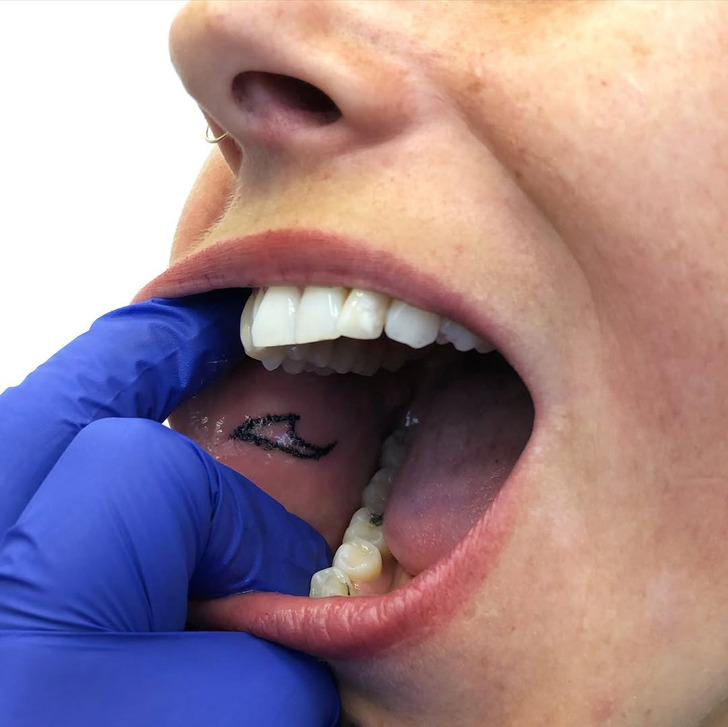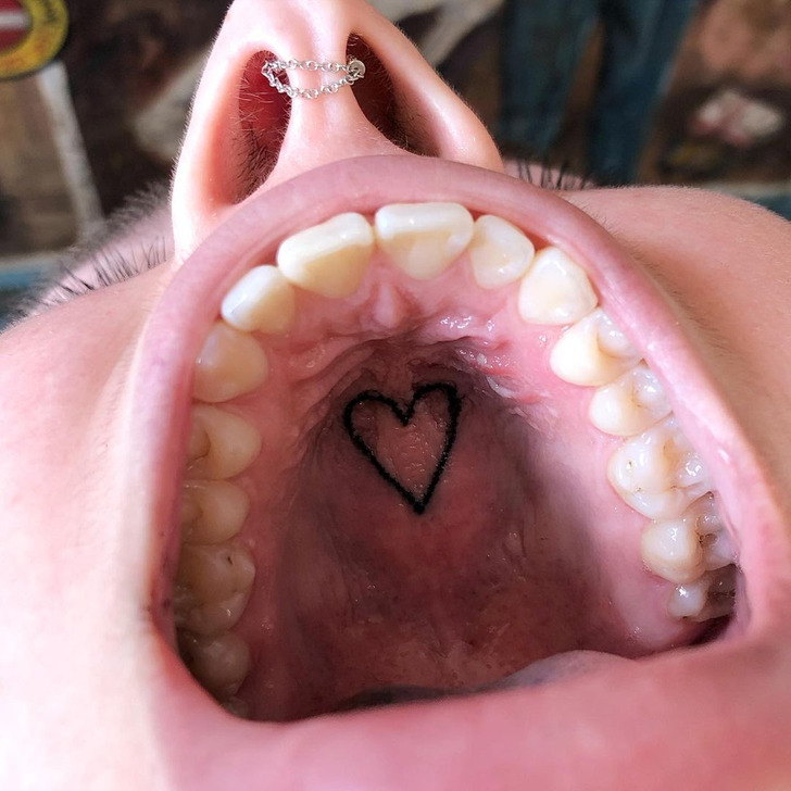 When it comes to post-tattoo care, Voet relies on his years of experience as a professional piercer to offer practical advice. Healing, he explains, is much like that of any other oral tattoo or piercing — it’s important to avoid spicy foods, strong alcohol, and to be mindful of what you put in your mouth for a few days. After that, the body’s natural healing abilities within the mouth do most of the work on their own.