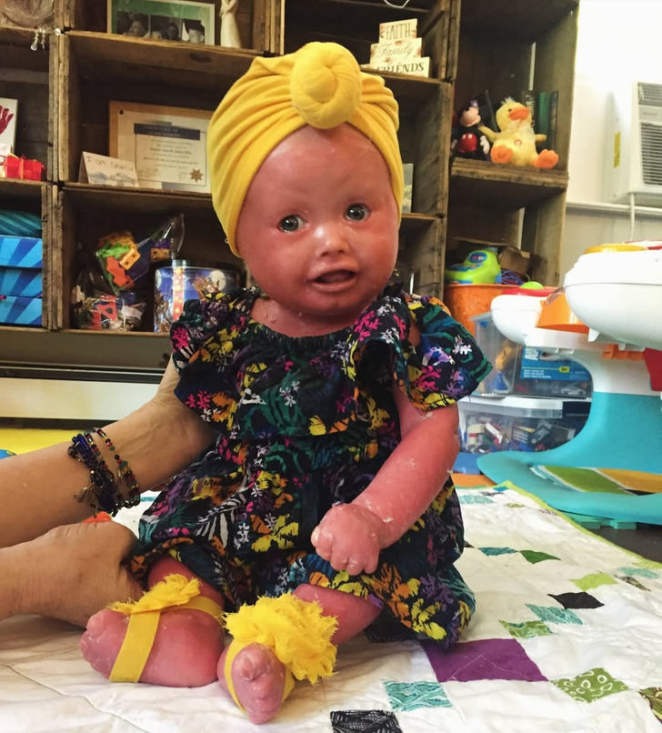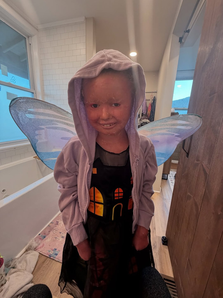 Due to her rapid skin turnover, Anna needs an unusually high caloric intake — about 2,100 calories per day. Jennie explains, “We have to adjust to the heat, the cold, and her skin.” She adds that their routine includes multiple two-hour baths a day, meeting her caloric needs, weekly occupational therapy, and bi-weekly physical therapy.