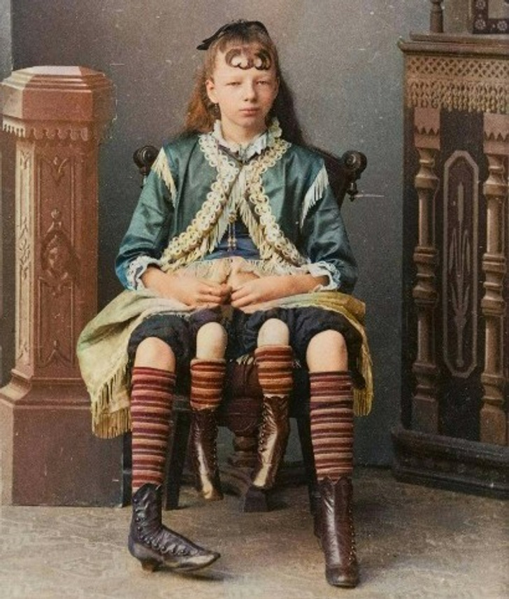 Josephine Myrtle Corbin was no ordinary child — she was born with an incredibly rare condition called polymelia, giving her four legs: two normal ones and two smaller ones extending from her hips. But that wasn’t all — Myrtle also had two sets of reproductive organs and two pelvises, making her one of history’s most extraordinary medical wonders. Let’s explore her life and uncover the remarkable milestones that made her story unforgettable.