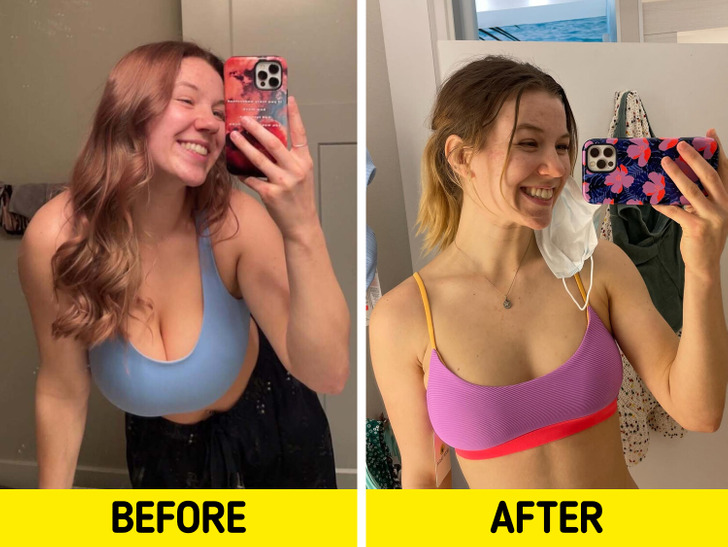 Before the operation, she suffered from frequent migraines, shoulder pain from bra straps digging into her skin, and chronic back pain. Her breast size went from a 28H to a C/D, and she described the recovery process as challenging, especially the first week, when she couldn’t even lift a water bottle on her own. The full recovery took about six weeks, with the first few days being the most difficult.