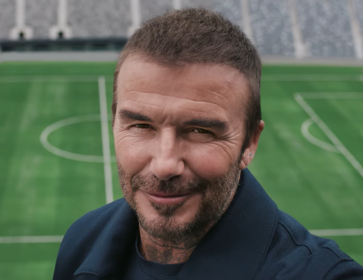 Beckham, 50, teamed up with the cell phone giant for a new Verizon Access ad. In the spot, the former World Cup star is seen strolling through different areas of a stadium, slowly making his way toward the field.