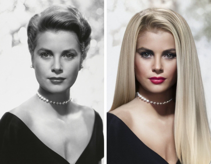 Movies made during the Golden Age of Hollywood possess a unique kind of magic and timeless charm. Audrey Hepburn, Grace Kelly, Marilyn Monroe, and other icons of that era gaze at us from black-and-white film frames — their hair styled in elegant waves, their lashes coated with thick mascara, and their eyebrows drawn in ultra-thin arches. But times have changed, and today’s movie stars look completely different. With the help of our designers and AI, we reimagined how these Golden Age legends might appear if they lived — and acted in films — today.