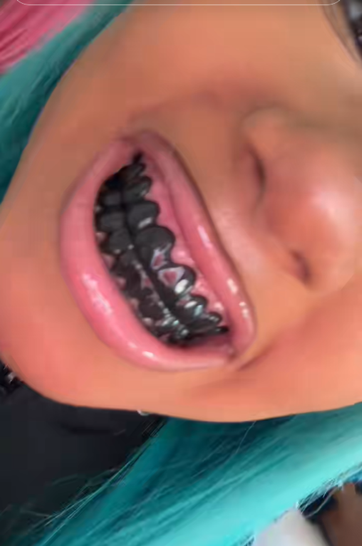 Kim Kardashian’s 12-year-old daughter, North, is very active on TikTok — and her latest videos truly surprised people. This time, she appeared in a completely new look, with long blue hair, fake piercings, and even black teeth, leaving viewers shocked and curious. People quickly flooded the comments — especially since comments had been disabled on her earlier videos — and reactions ranged from simple, “Attendance before Kim turns off the comments” to long discussions.